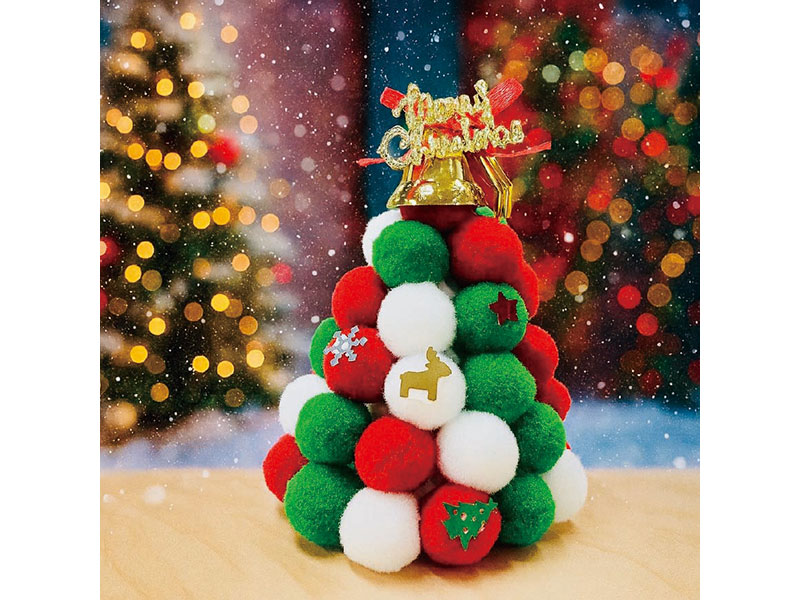 ポンポンを使ってクリスマスのカラフルで